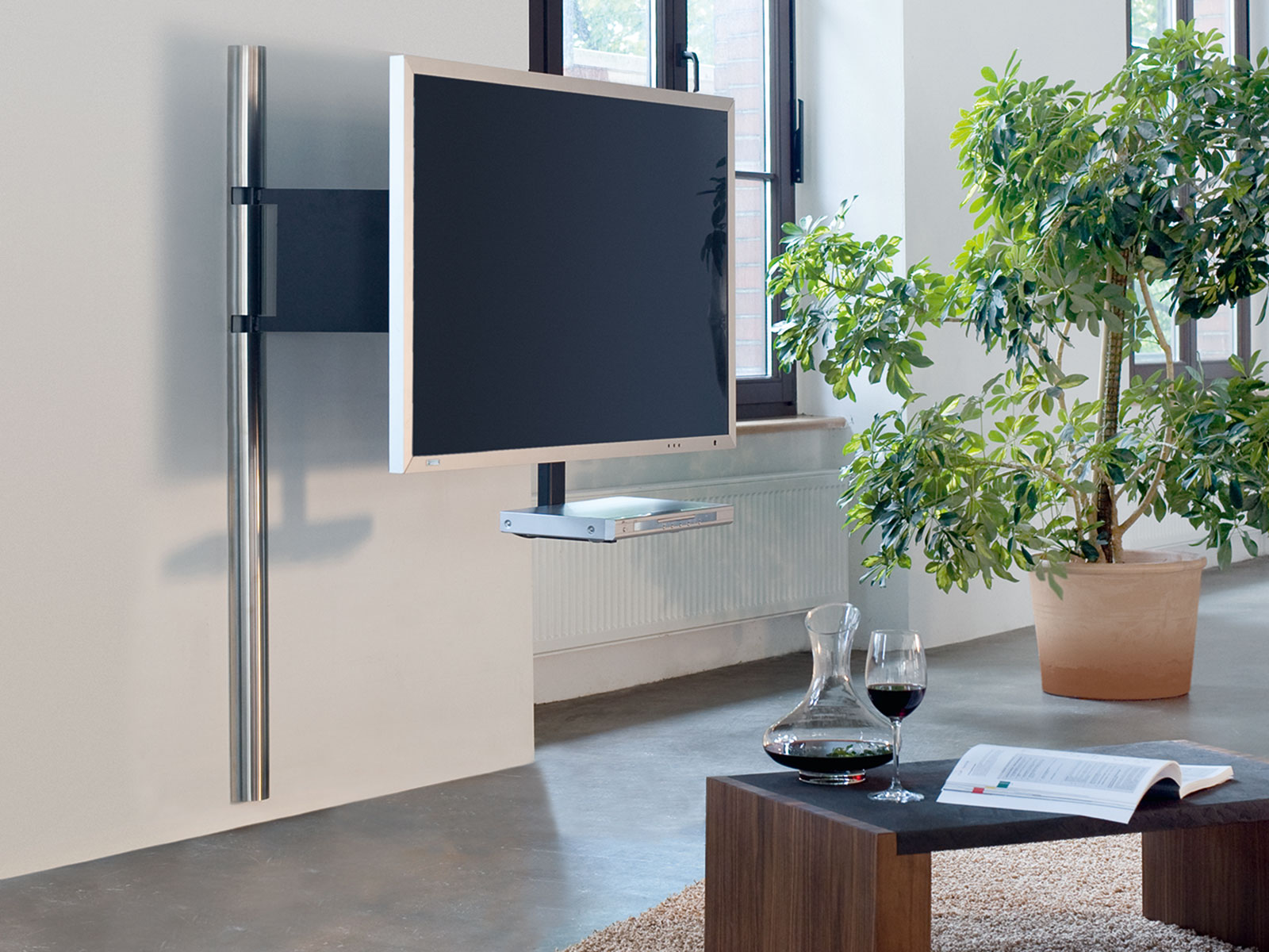 Buy Design TV wall mounts online here. Whether swivel, tilt or swivel - we have the choice for your living room, bedroom, office, showroom or exhibition stand. Take a look at the selection here. Best quality at a fair price. A Wissmann TV wall mount is a practical and stylish way to mount your TV on the wall. With a Wissmann TV mount, you can hang your TV at the perfect height and angle to ensure the best viewing experience. The TV mount is made of sturdy steel and provides a secure attachment for TVs of all sizes. It is also easy to install and has integrated cable management to keep your home neat and tidy. Buy a Wissmann TV mount now and enjoy the ultimate viewing experience. You can get our TV wall mounts in contemporary colours white, black, silver grey and stainless steel. For those who like a TV stand have a look on our collection.